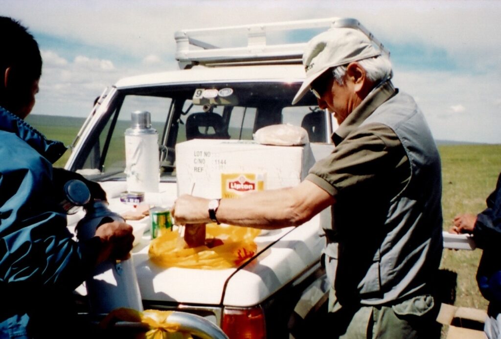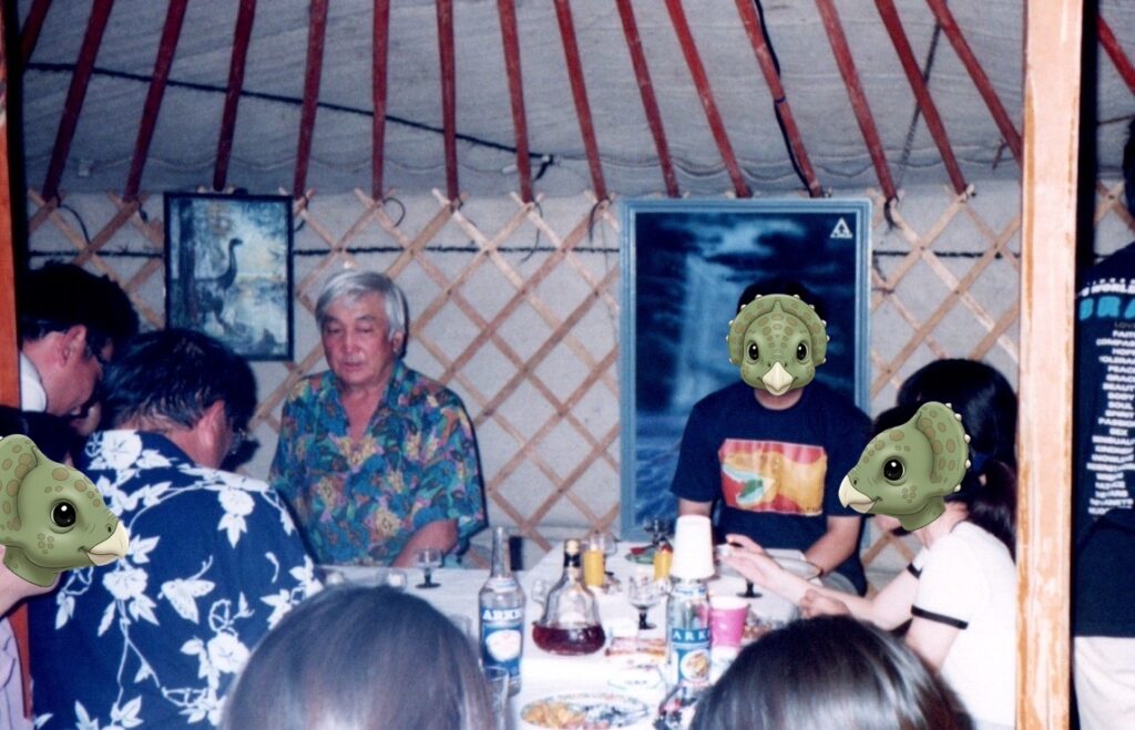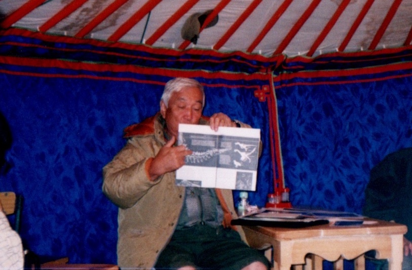 1996年にモンゴルの文化や歴史を学ぶツアーが開催されました。6班くらいでた大規模なツアーです。その時、バルスボルト博士は古生物学分野の中心人物として、日本人旅行者による発掘を受け入れ、指導してくださいました。
